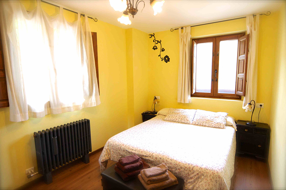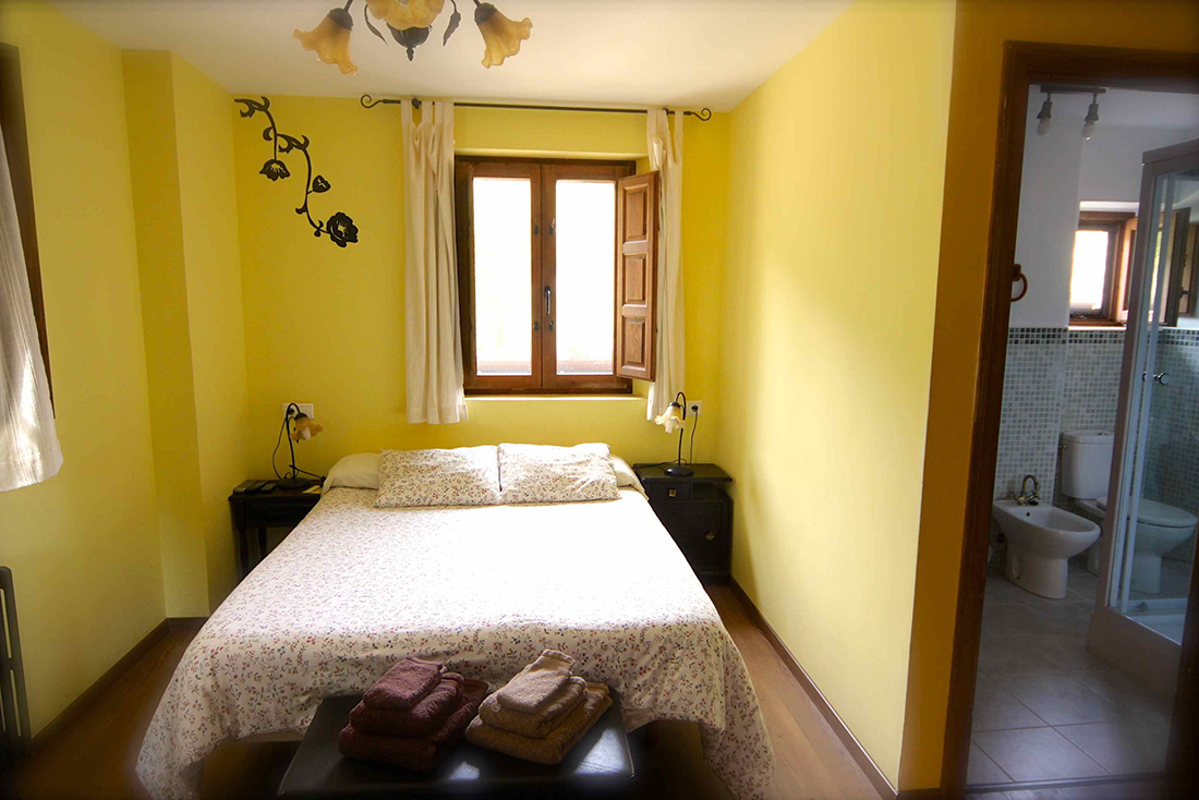 Habitación doble con cama de matrimonio, un amplio jacuzzi (el segundo mas grande de la casa) con cromoterapia, hidromasaje y radio, baño con cabina de hidromasaje para dos, televisión con DVD, calefacción individual.