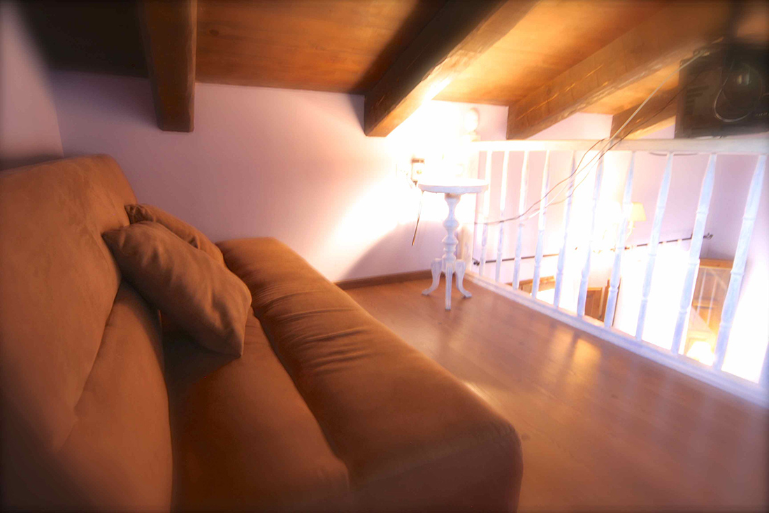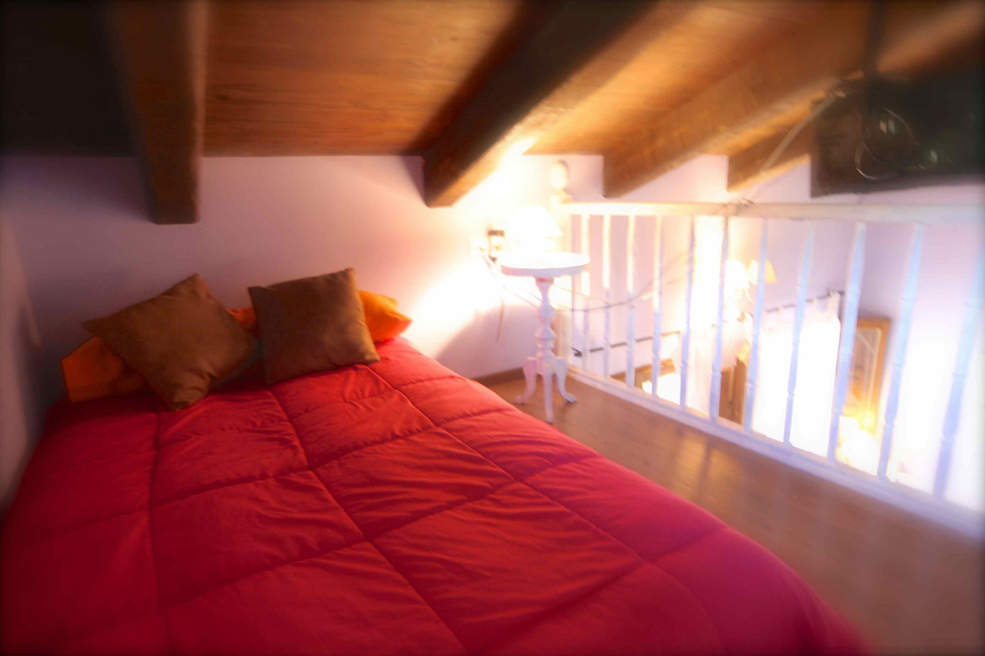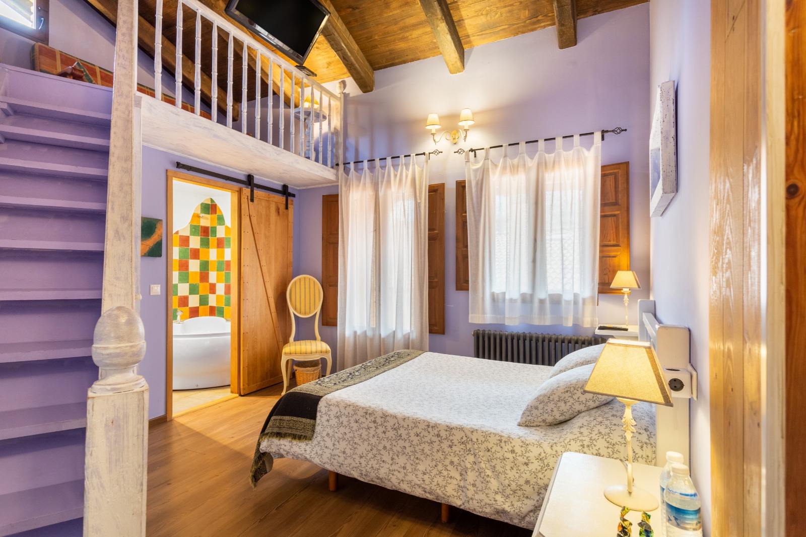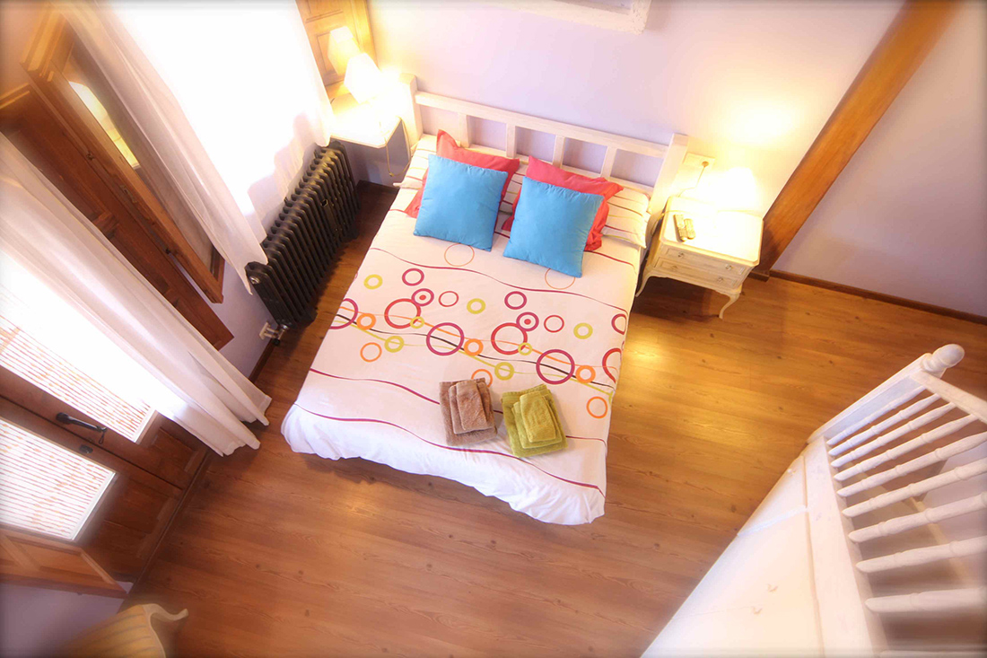Habitación doble con cama de matrimonio, televisión, calefacción individual y una planta alta con sofá que se hace cama para dos personas más. Es ideal para los chiquillos, pero también para viajar en grupo con amigos.